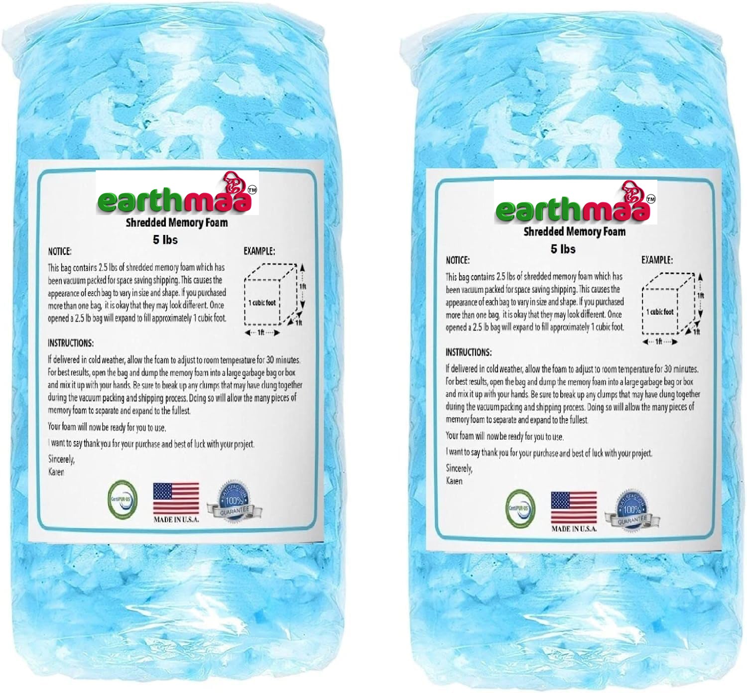 Premium Shredded Memory Foam Bean Bag Filler, Pillow Cushion Filling, Dog Bed, Craft, Pouf Refill, Poly Fill/Poly Fil Stuffing- Soft, Made in USA, Multi Color - 10 lbs